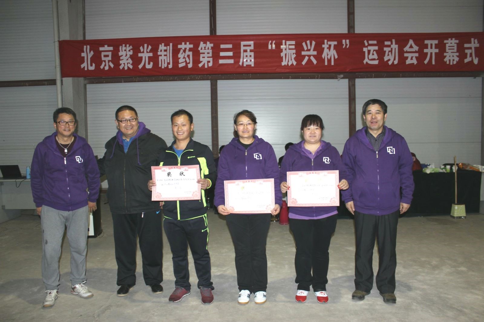 为丰富公司员工的业余生活,弘扬运动精神,促进员工身心健康,增强团队凝聚力,2015年11月6日,北京紫光制药有限公司在延庆生产基地运动场举行了2015年“振兴杯”运动会。会议举行了开幕式,公司全体员工和下属公司,斯贝福(北京)实验动物科技有限公司全体员工参加会议,参会人员200多人。分为8个联队,此次运动会分为团体项目和个人项目两大项,团体项目主要有三项:10人跳绳、拔河、篮球友谊赛。个人项目主要有六项:踢毽子、跳绳、50米托球、定点投篮、乒乓球、羽毛球。