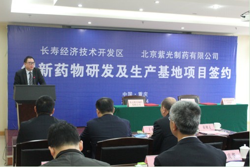 2015年12月14日,北京紫光制药有限公司和长寿经济技术开发区关于创新药物研发及生产基地项目的签约仪式在长寿经开区隆重举行。